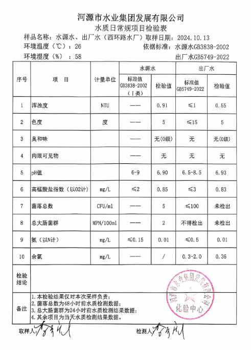 2024年10月13日水質(zhì)檢驗(yàn)報(bào)告