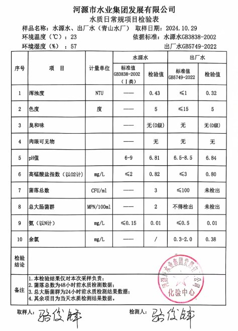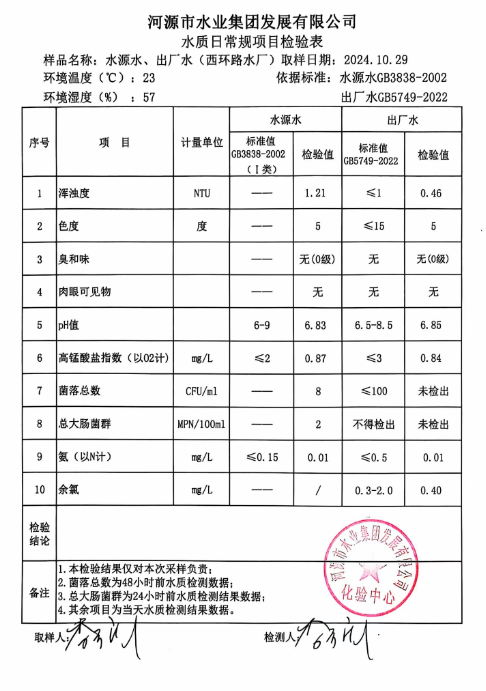 2024年10月29日水質(zhì)檢驗報告